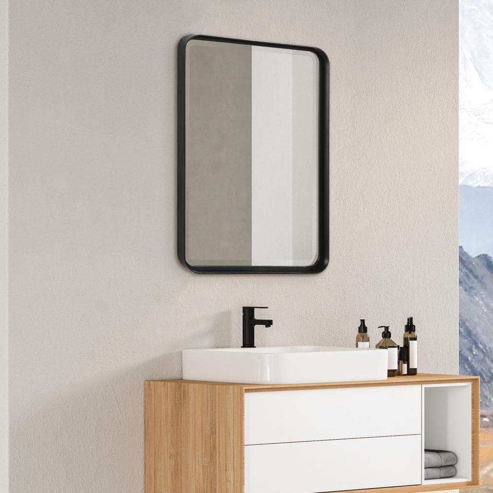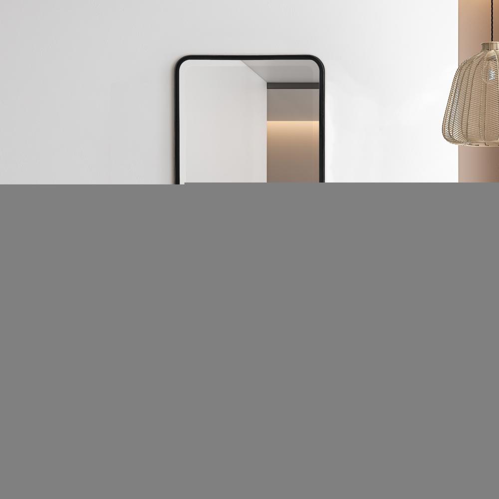 Versatile in Design, This Vanity Mirror is Constructed From A Forged Metal Strap Finished in Matte Black. The Mirror Has A 1 1/4" Bevel and May Be Hung Horizontal or Vertical.