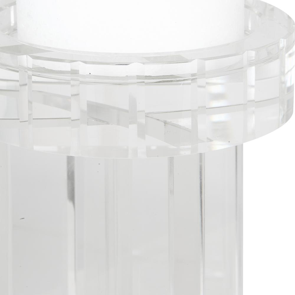 This Elegant Set of Candleholders is Created From Solid Pieces of Crystal with Delicate Carved Details. Two 3" X 3" White Candles Are Included. Sizes: S-4x5x4, L-4x9x4