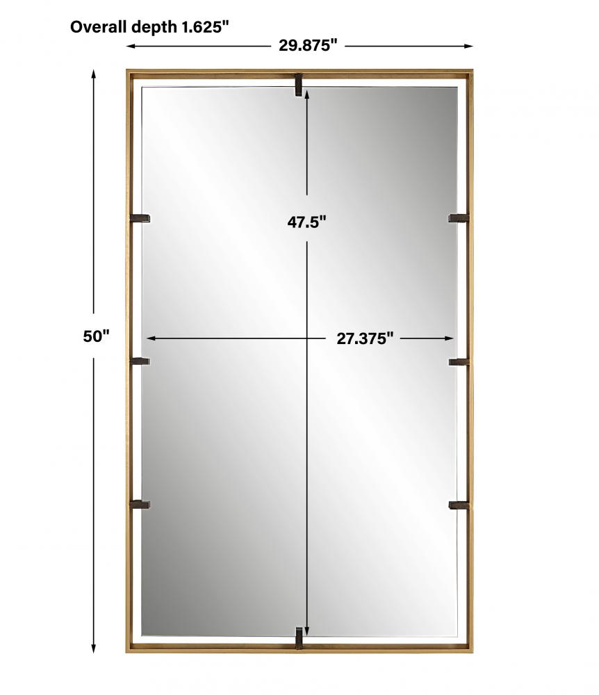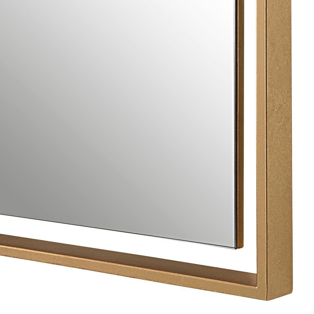 This Mirror Displays A 3-dimensional Design with An Outer Iron Frame Finished in Warm Gold, Surrounding A Floating Mirror Held By Aged Bronze Clips. May Be Hung Horizontal or Vertical.
