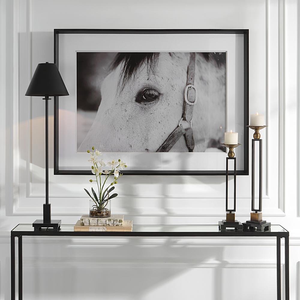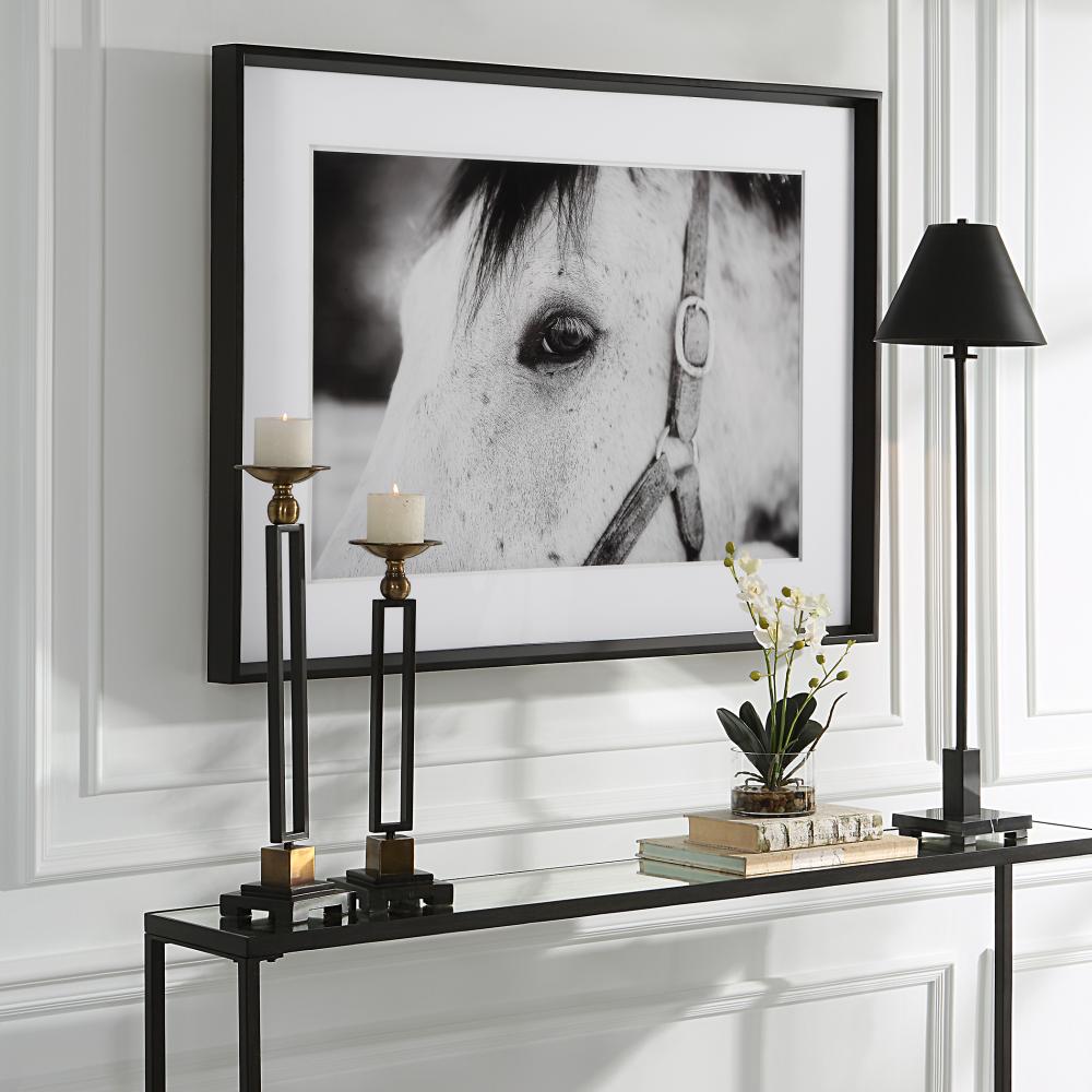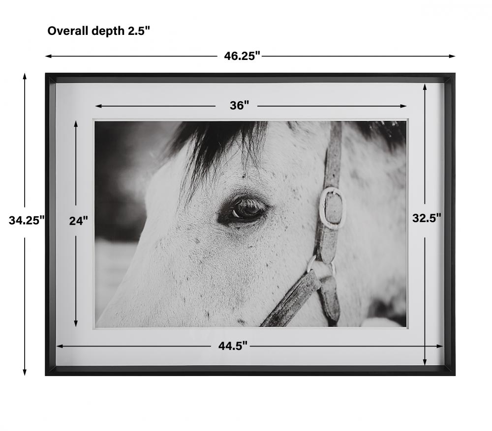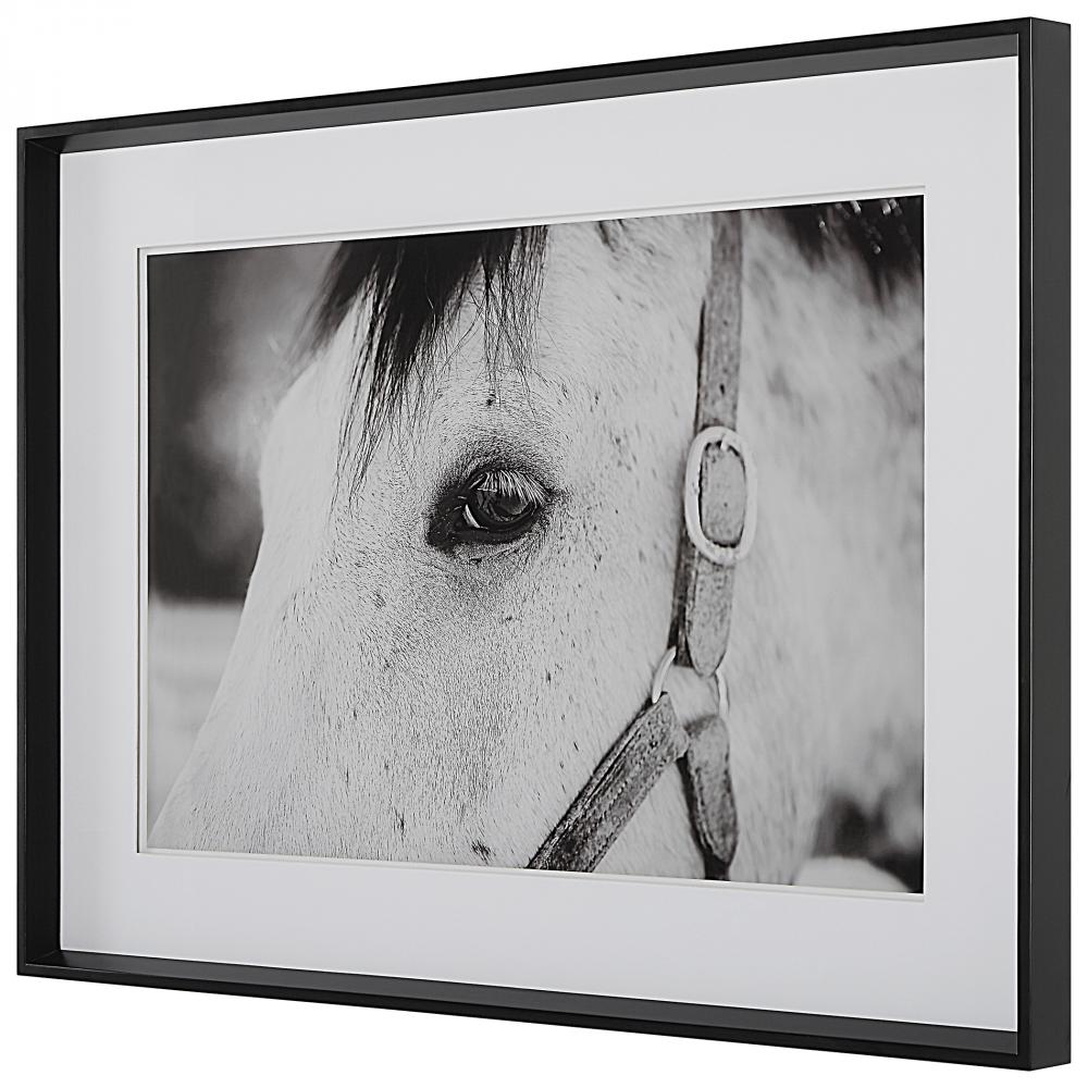 Ralph Waldo Emerson Once Said, "the Eyes Indicate The Antiquity of The Soul." As One Part of A Striking Equine Story, This Artwork Showcases An Exclusive Black and White Portrait with Layered White Matting Under Glass and A Simple Satin Black Frame.