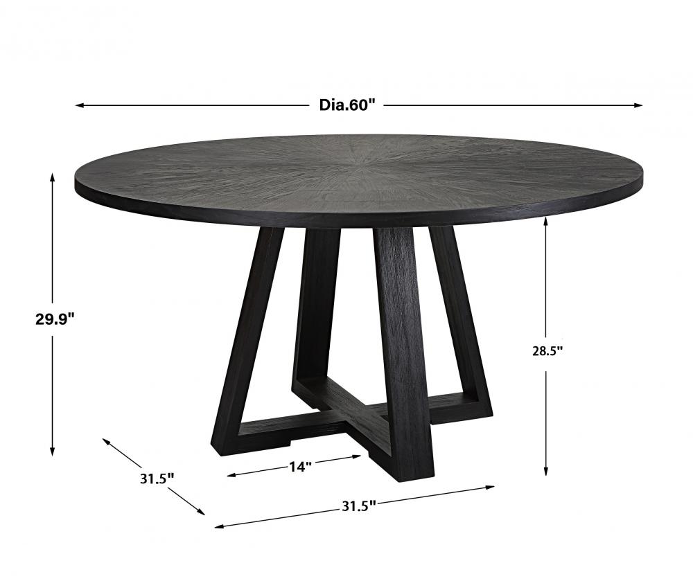 With Clean Casual Styling, This Dining Table Features A Richly Grained Oak Veneer Inlaid Top Finished in A Rich Charcoal Black, Atop A Sturdy Elm Wood Trestle Base. Solid Wood Will Continue to Move with Temperature and Humidity Changes, Which Can Result in Cracks and Uneven Surfaces, Adding to Its Authenticity and Character.