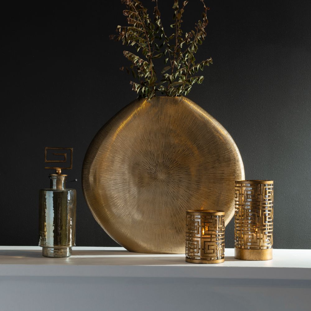 Cast Aluminum Vase Features A Ribbed, Gold Finish.