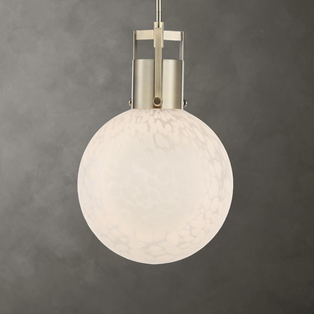 Our Huch Pendant Features An Upper Cap With Architectural Crossbar Accents With An Oversized Etched White Spotted Glass Globe Giving Warmth And Ample Light. 1-60 Watt Max Edison Socket. Bulbs Not Included. Supplied With 15' Wire, 3-12" Stems And 1-6" Stem For Adjustable Installation.