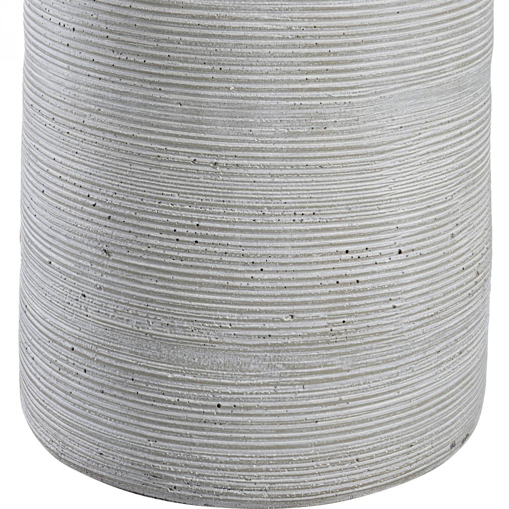 Handcrafted in An Artisanal Style, This Table Lamp is Formed From Ceramic in Neutral Off-white and Gray Tones with Carved Ring Detailing. Steel Accents Are Finished in A Complementary Brushed Nickel. The Hardback Drum Shade is Covered in A White Linen Fabric.