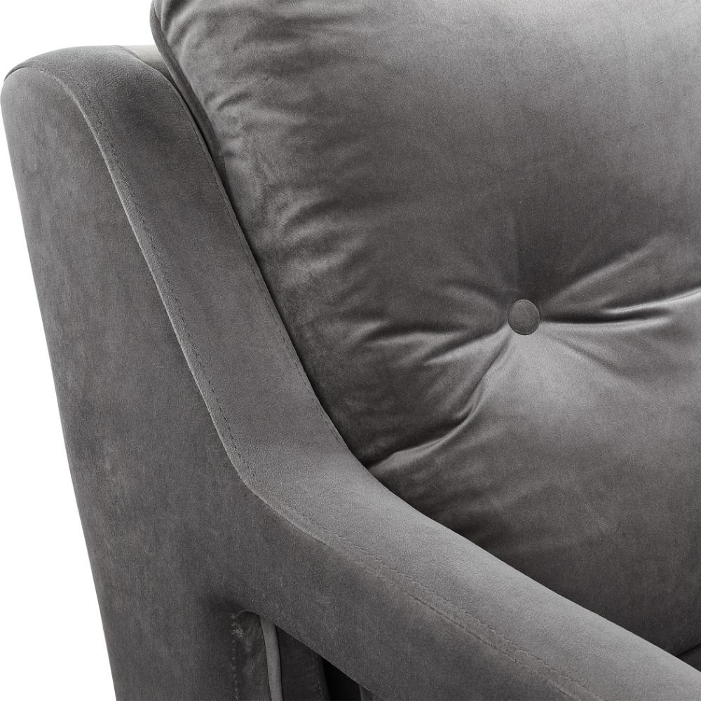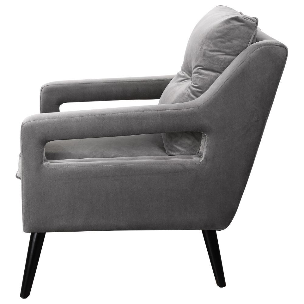 A Nod to Classic Scandinavian Style, This Open Arm Style Chair is Tailored in A Luxurious Smoke Gray Velvet with A Button Tufted Back Cushion and Matte Black Finished Wood Legs. Seat Height is 19".