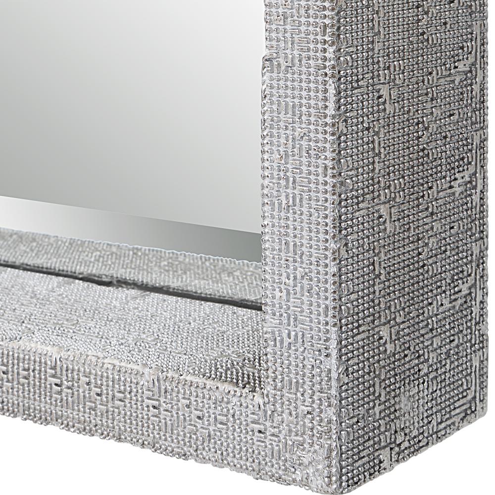 This Oversized Mirror Shows Off Simple Lines and A Beautiful Textured Silver Finish. Can Be Displayed Leaning Against A Wall or Hung Horizontal or Vertical.