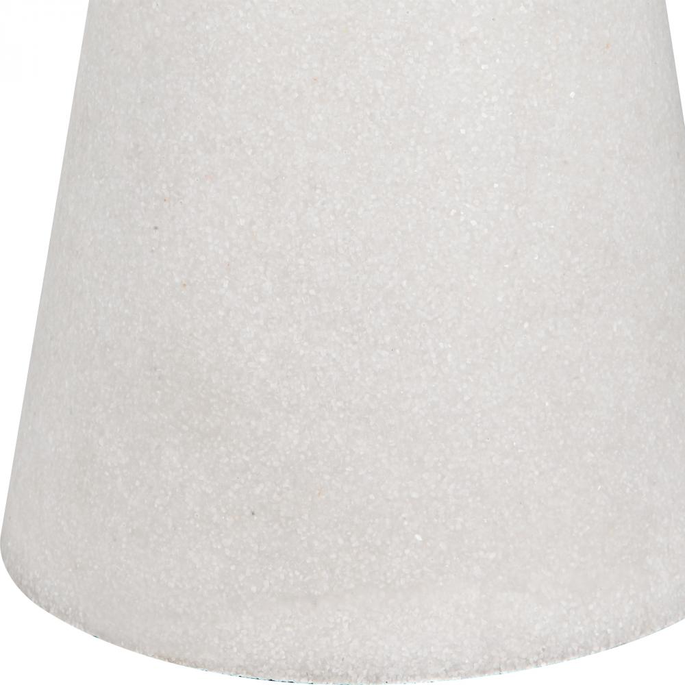 This Table Lamp Showcases An Eloquent Silhouette That's Crafted From Ivory Man-made Stone That Accurately Replicates The Look of Thassos Marble, Accented with Iron Details Finished in Polished Nickel. The Round Hardback Shade is Covered in White Linen Fabric.