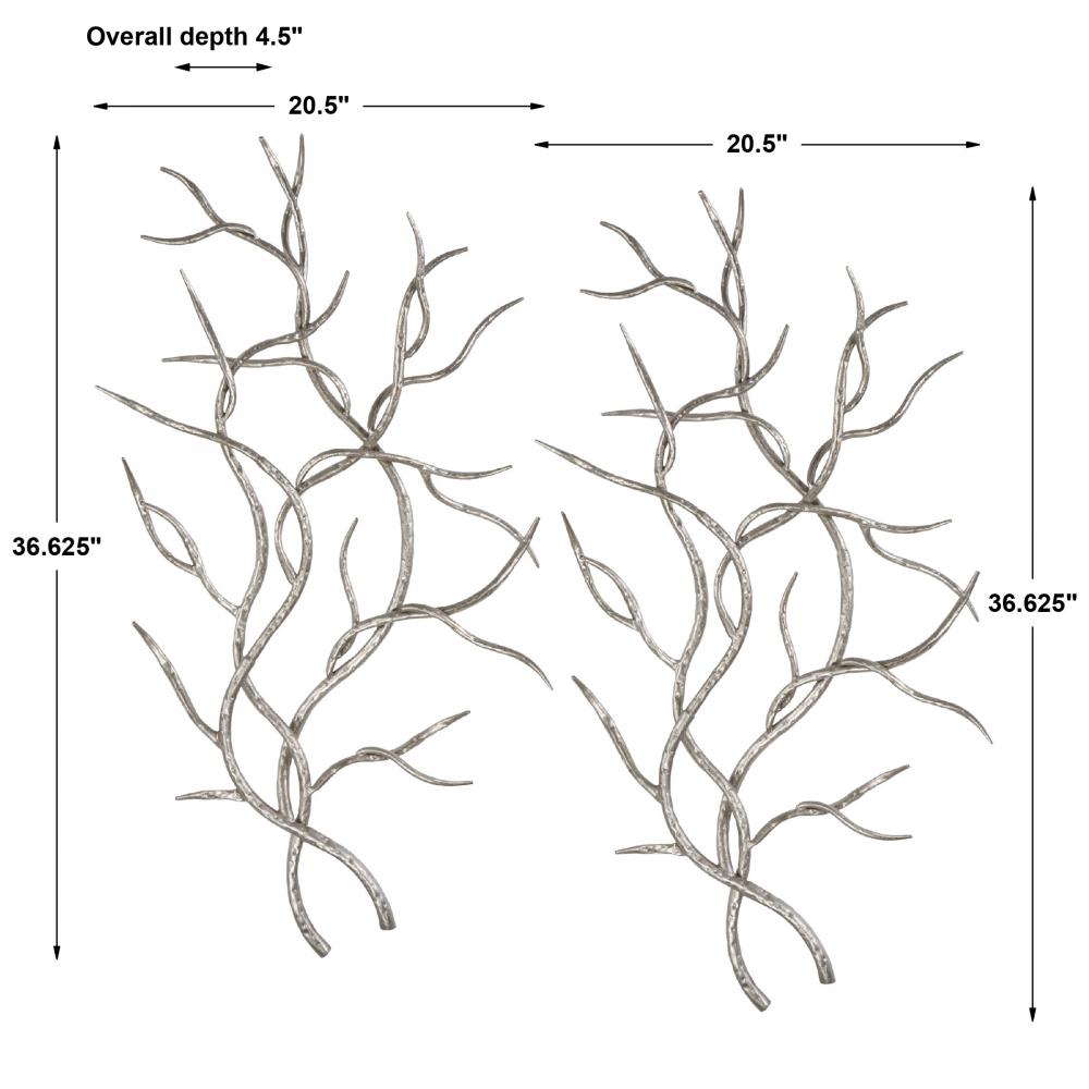 Artistically Replicated Branches Made of Hand Forged and Hand Hammered Iron with A Bright Silver Leaf Finish. May Be Hung Horizontal or Vertical.