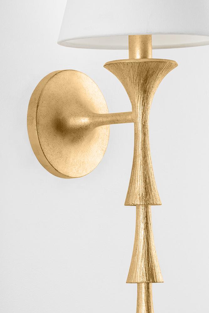 Nature meets geometry in the elevated Vails Gate. This pendant features a repetitious stack of flared trumpet forms, reminiscent of the nodes on a flower stem. Fluting details add depth to the symmetrical design, nodding to its organic origins. Finished in Vintage Gold Leaf, Vails Gate is available as a pendant light in two sizes and a 1-light sconce.