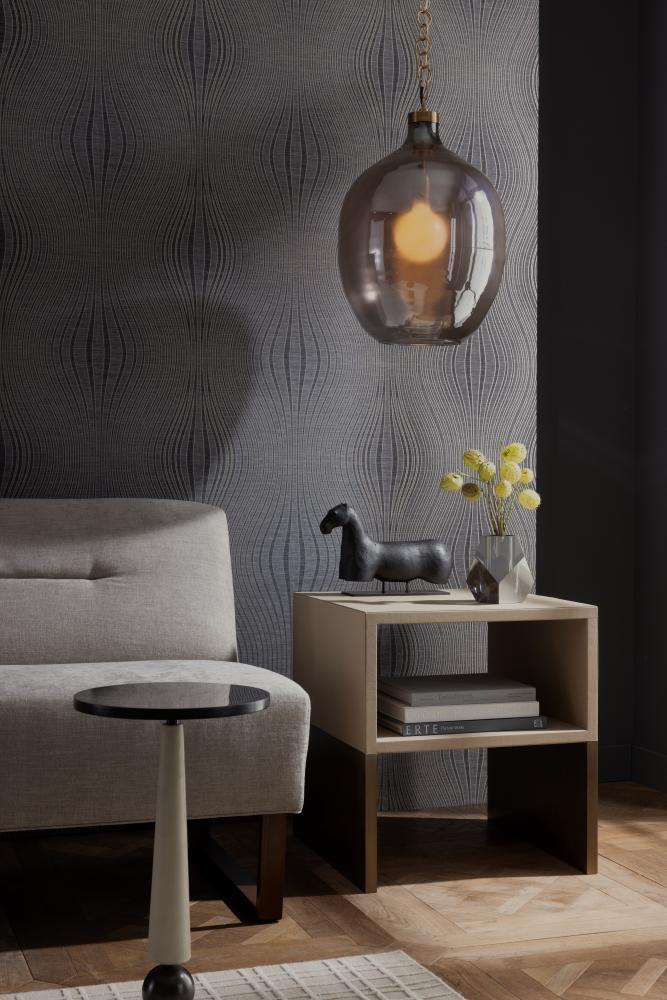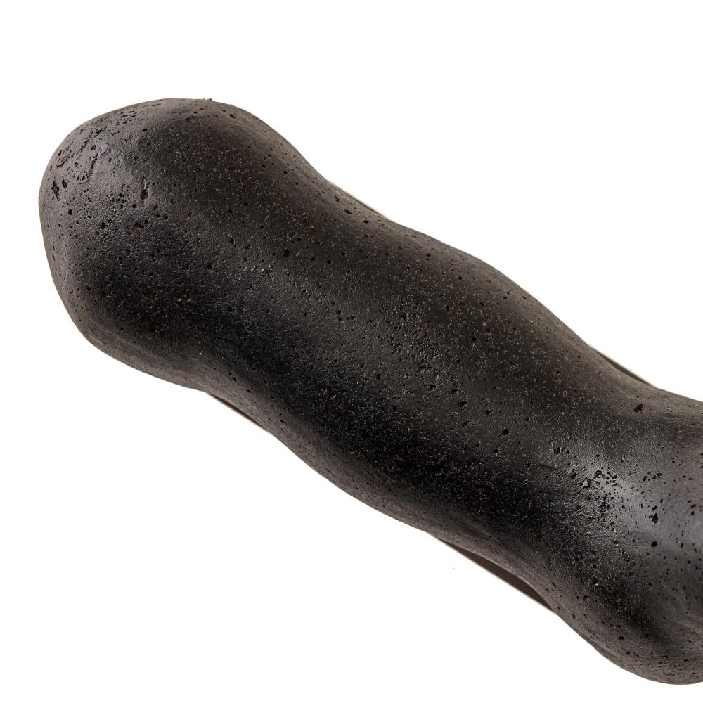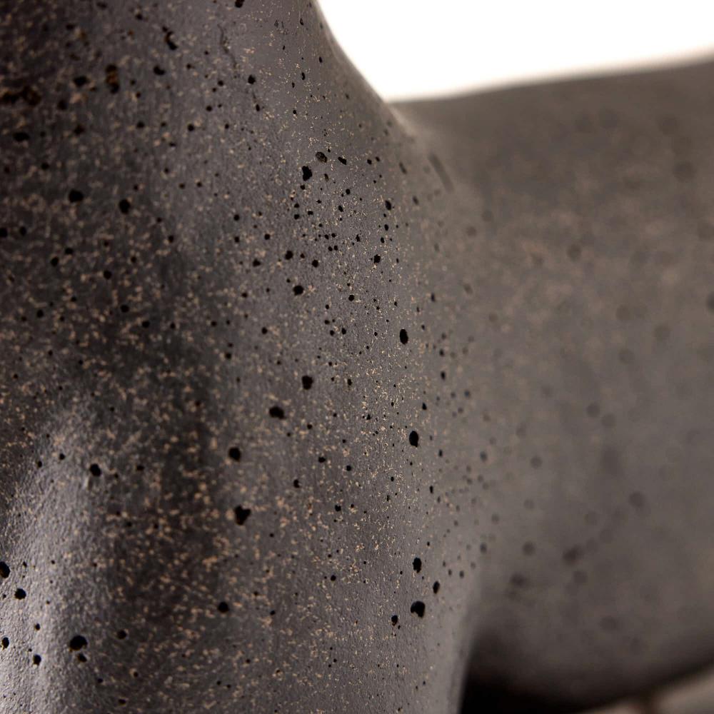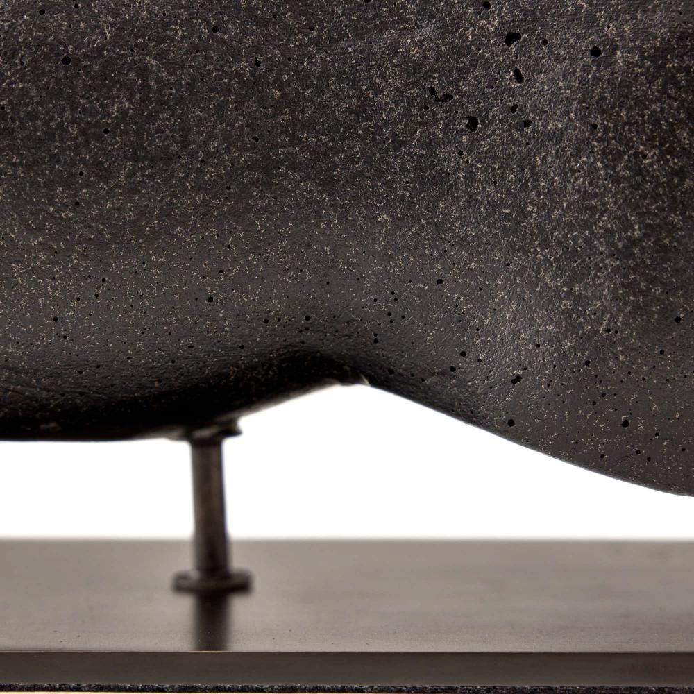 THE FIGURATIVE VANDERLINDE TABLETOP SCULPTURE WAS INSPIRED BY SCULPTURES OF ANTIQUITY, THE ART OBJECT IS RECAST IN POROUS CHARCOAL RIVERSTONE COMPOSITE AND RESTS ON A BRONZED STEEL BASE. FINISH WILL VARY.