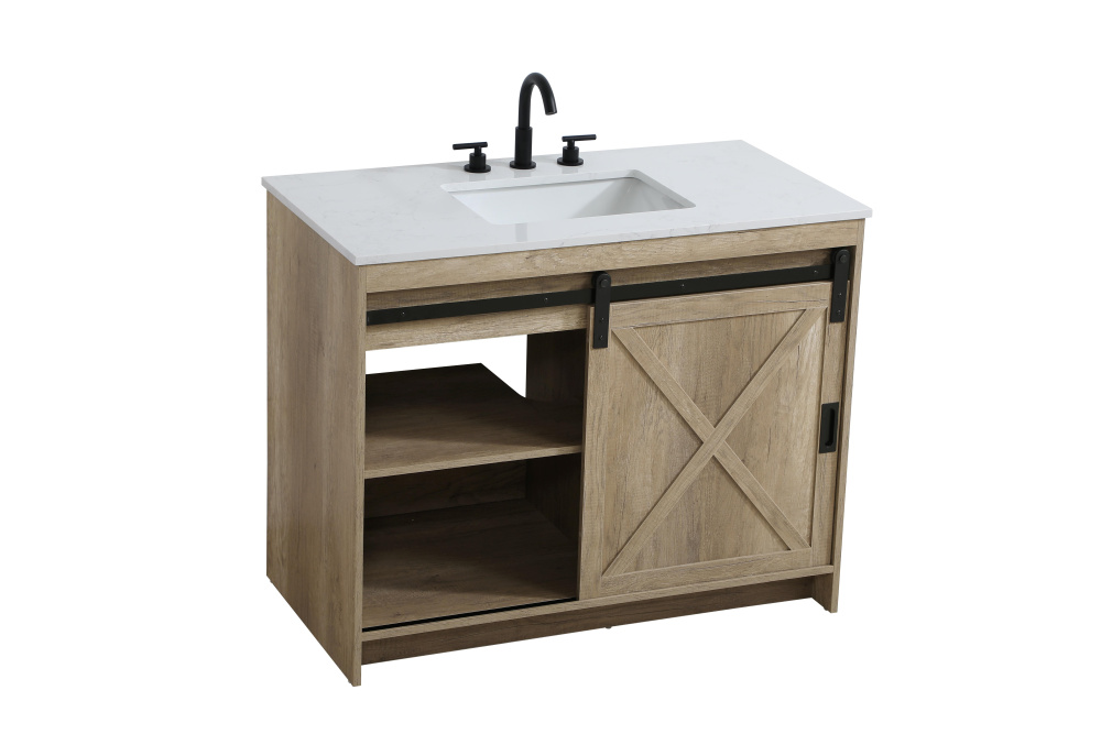 Transform your bathroom with this rustic barnyard-style vanity, designed to balance aesthetic appeal and functionality. Featuring a sliding barn door with black metal hardware and complementary handle pulls, this piece blends rugged charm with practical design. The engineered marble countertop displays unique marbling, while the porcelain undermount sink offers easy maintenance and durability. Available in Espresso, Natural Oak, and Rustic Grey finishes, this vanity suits a range of styles. It includes a deep storage drawer for larger items, a hidden shelf for towels or décor, and adjustable foot levelers for added stability on uneven floors. With pre-drilled faucet holes for easy setup, this vanity delivers style and substance to enhance your bathroom.