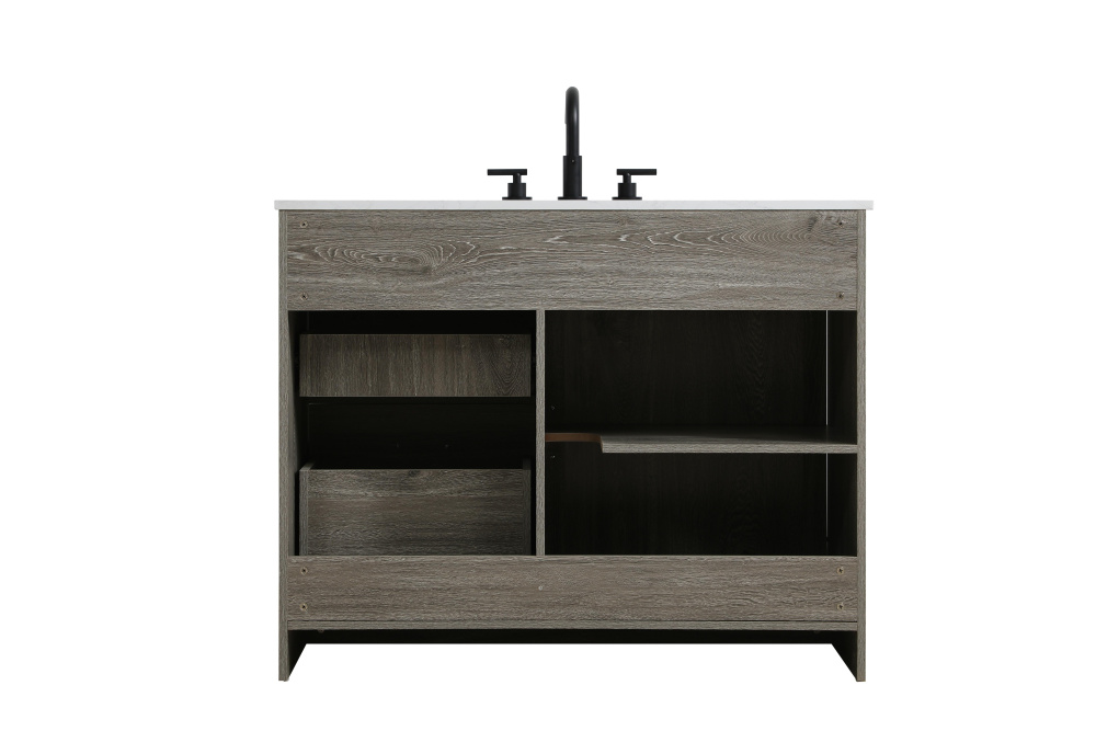 Transform your bathroom with this rustic barnyard-style vanity, designed to balance aesthetic appeal and functionality. Featuring a sliding barn door with black metal hardware and complementary handle pulls, this piece blends rugged charm with practical design. The engineered marble countertop displays unique marbling, while the porcelain undermount sink offers easy maintenance and durability. Available in Espresso, Natural Oak, and Rustic Grey finishes, this vanity suits a range of styles. It includes a deep storage drawer for larger items, a hidden shelf for towels or décor, and adjustable foot levelers for added stability on uneven floors. With pre-drilled faucet holes for easy setup, this vanity delivers style and substance to enhance your bathroom.