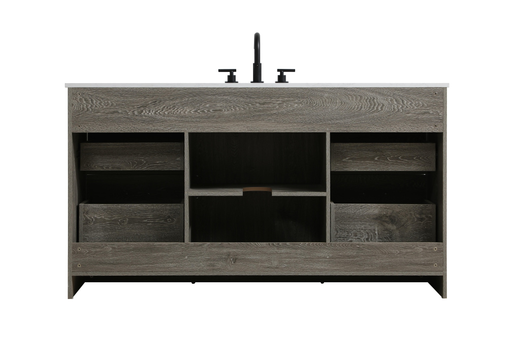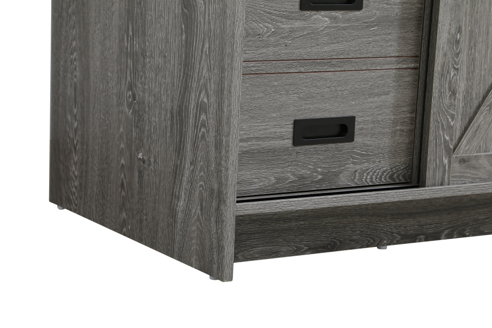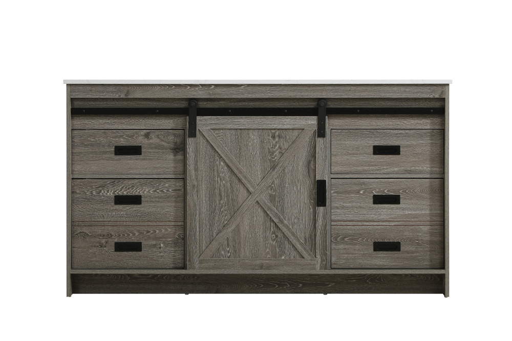 Transform your bathroom with this rustic barnyard-style vanity, designed to balance aesthetic appeal and functionality. Featuring a sliding barn door with black metal hardware and complementary handle pulls, this piece blends rugged charm with practical design. The engineered marble countertop displays unique marbling, while the porcelain undermount sink offers easy maintenance and durability. Available in Espresso, Natural Oak, and Rustic Grey finishes, this vanity suits a range of styles. It includes a deep storage drawer for larger items, a hidden shelf for towels or décor, and adjustable foot levelers for added stability on uneven floors. With pre-drilled faucet holes for easy setup, this vanity delivers style and substance to enhance your bathroom.