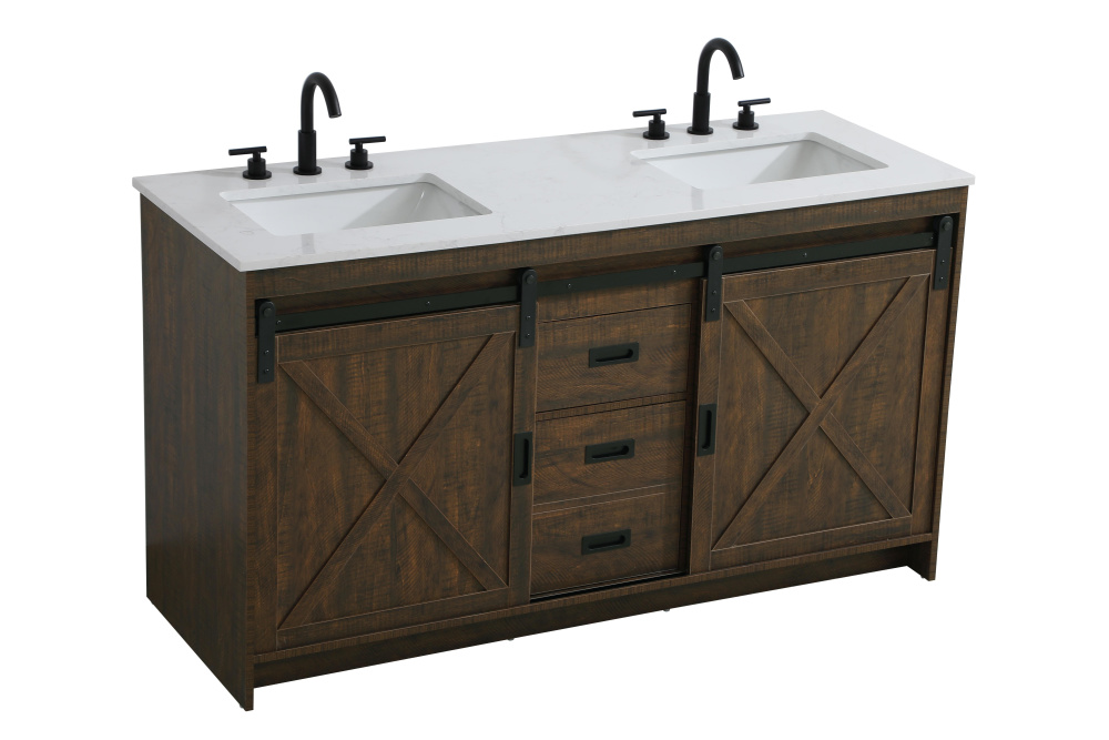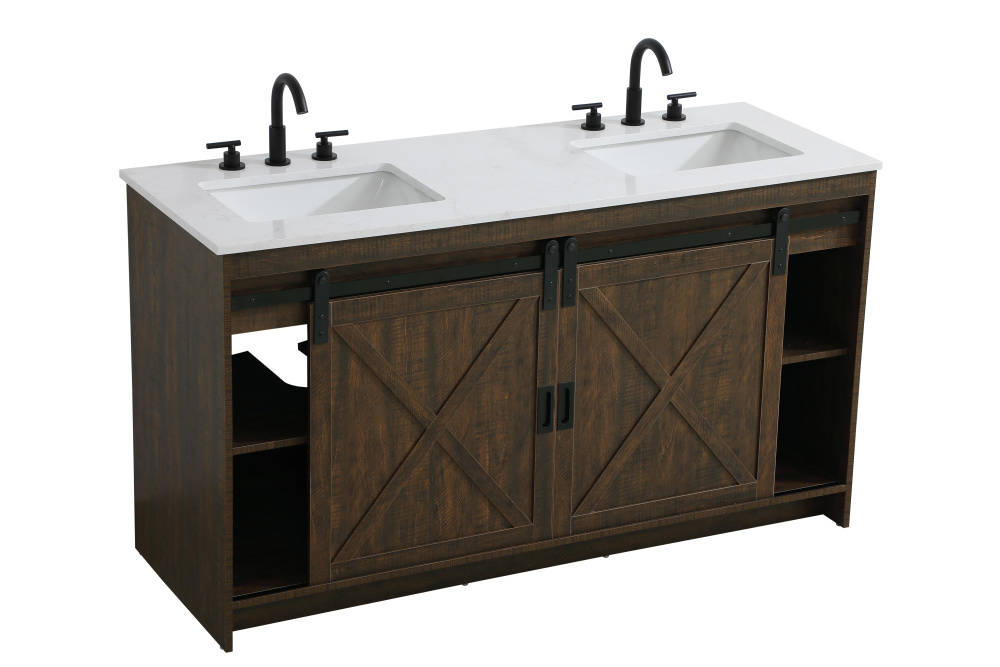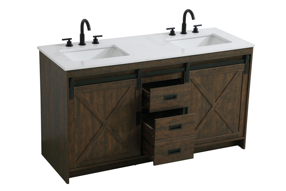 Transform your bathroom with this rustic barnyard-style vanity, designed to balance aesthetic appeal and functionality. Featuring a sliding barn door with black metal hardware and complementary handle pulls, this piece blends rugged charm with practical design. The engineered marble countertop displays unique marbling, while the porcelain undermount sink offers easy maintenance and durability. Available in Espresso, Natural Oak, and Rustic Grey finishes, this vanity suits a range of styles. It includes a deep storage drawer for larger items, a hidden shelf for towels or décor, and adjustable foot levelers for added stability on uneven floors. With pre-drilled faucet holes for easy setup, this vanity delivers style and substance to enhance your bathroom.