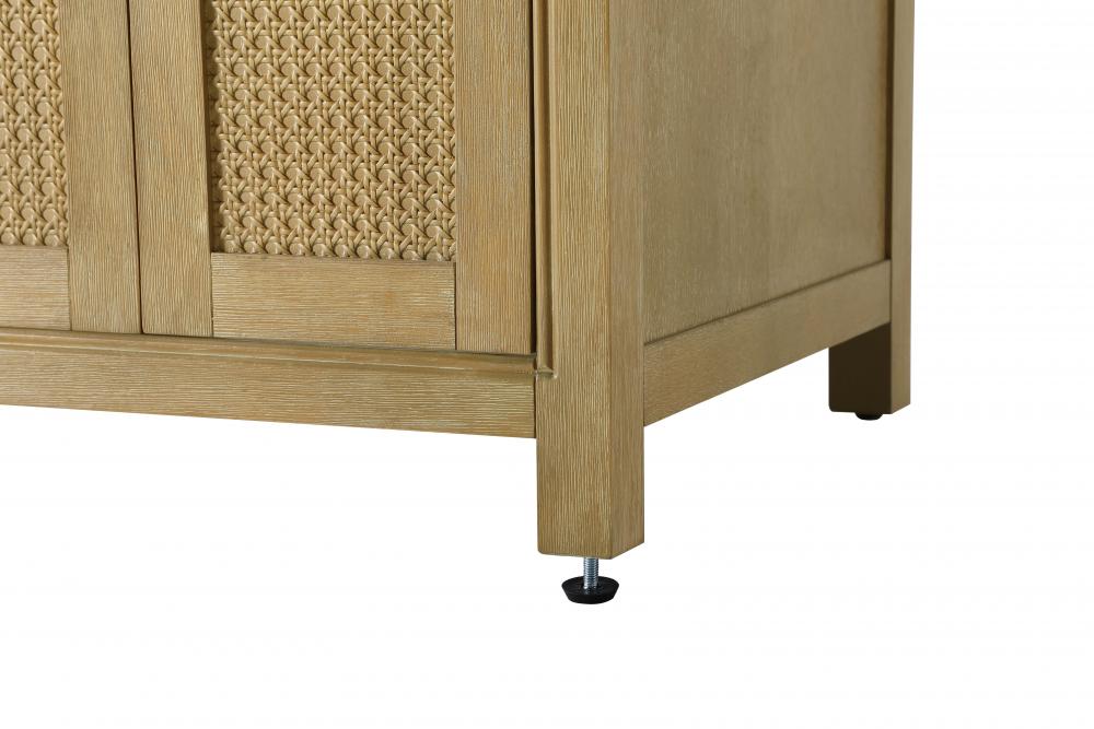 The shaker-style door panels feature a subtle caning design, adding texture and visual interest while maintaining a clean and timeless aesthetic.