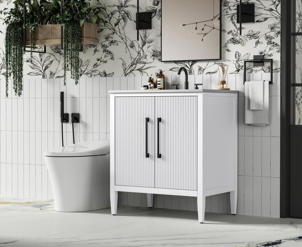 Designed with transitional elegance in mind, this bathroom vanity seamlessly blends traditional elements with modern functionality. Available in five stunning finishes, from the clean sophistication of Crisp White to the natural warmth of Honey Oak, the fluted door and drawer panels add subtle texture and charm. The white engineered marble countertop with natural veining exudes luxury, while the soft-closing doors with sleek black metal pulls offer a quiet, refined experience. Practicality is never compromised, with features like the U-shaped shelf for plumbing, and pre-drilled faucet holes for easy customization. Whether your style leans modern or classic, this vanity is the perfect balance of beauty and function, appealing to customers with a taste for quality and style.