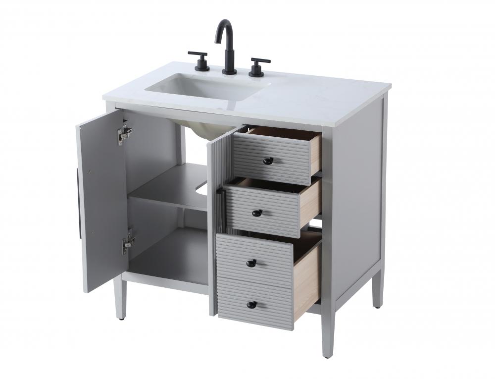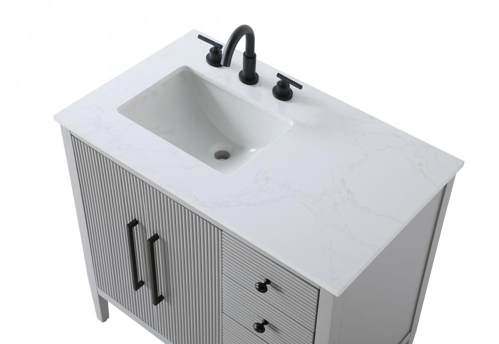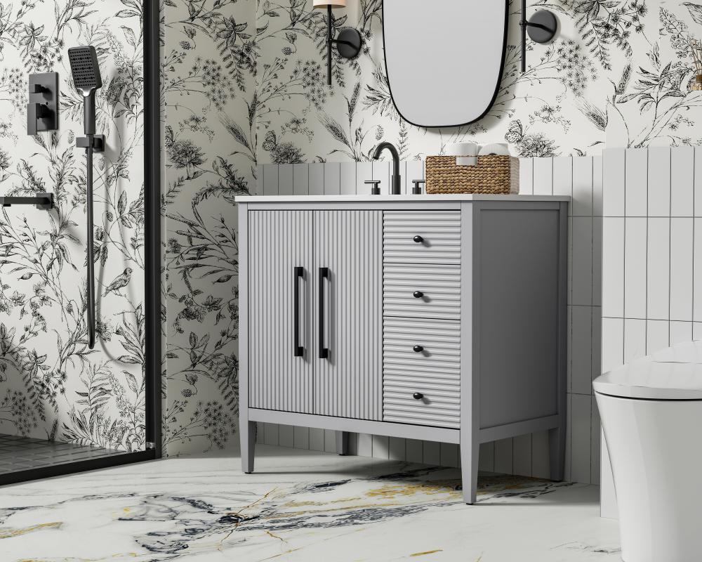 Designed with transitional elegance in mind, this bathroom vanity seamlessly blends traditional elements with modern functionality. Available in five stunning finishes, from the clean sophistication of Crisp White to the natural warmth of Honey Oak, the fluted door and drawer panels add subtle texture and charm. The white engineered marble countertop with natural veining exudes luxury, while the soft-closing doors and drawers with sleek black metal pulls offer a quiet, refined experience. Practicality is never compromised, with features like the U-shaped shelf for plumbing, deeper bottom drawer for ample storage, and pre-drilled faucet holes for easy customization. Whether your style leans modern or classic, this vanity is the perfect balance of beauty and function, appealing to customers with a taste for quality and style.