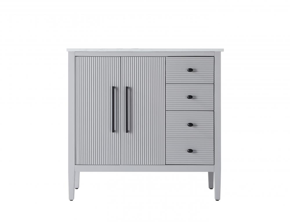 The textured fluted design on the door and drawer panels adds visual interest and elegance, creating a balance of classic charm and contemporary style.