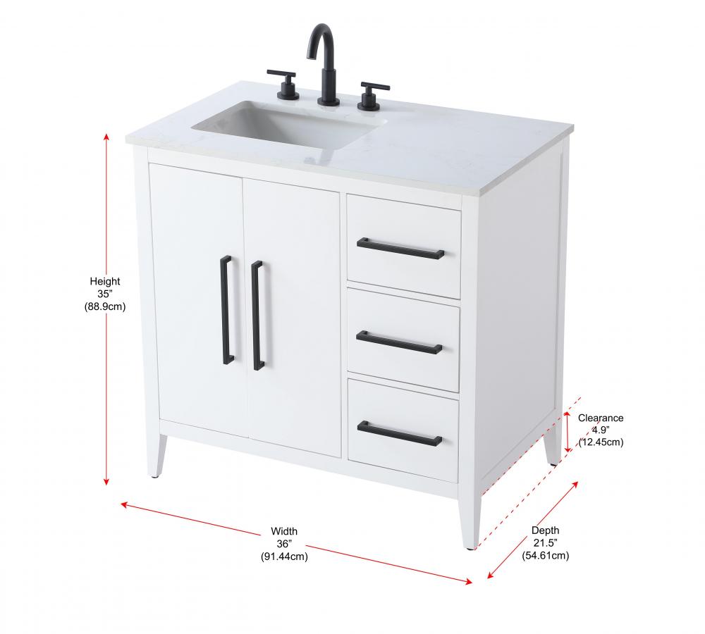 Vanity Cabinet 2Dr 3Dw 36x21.5x35 White