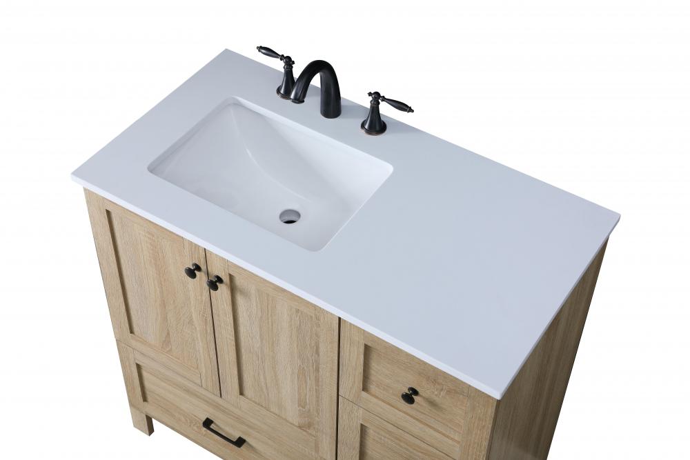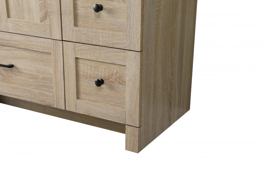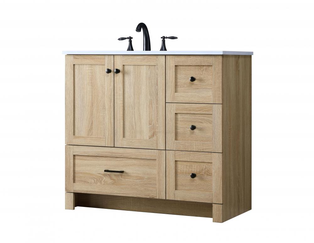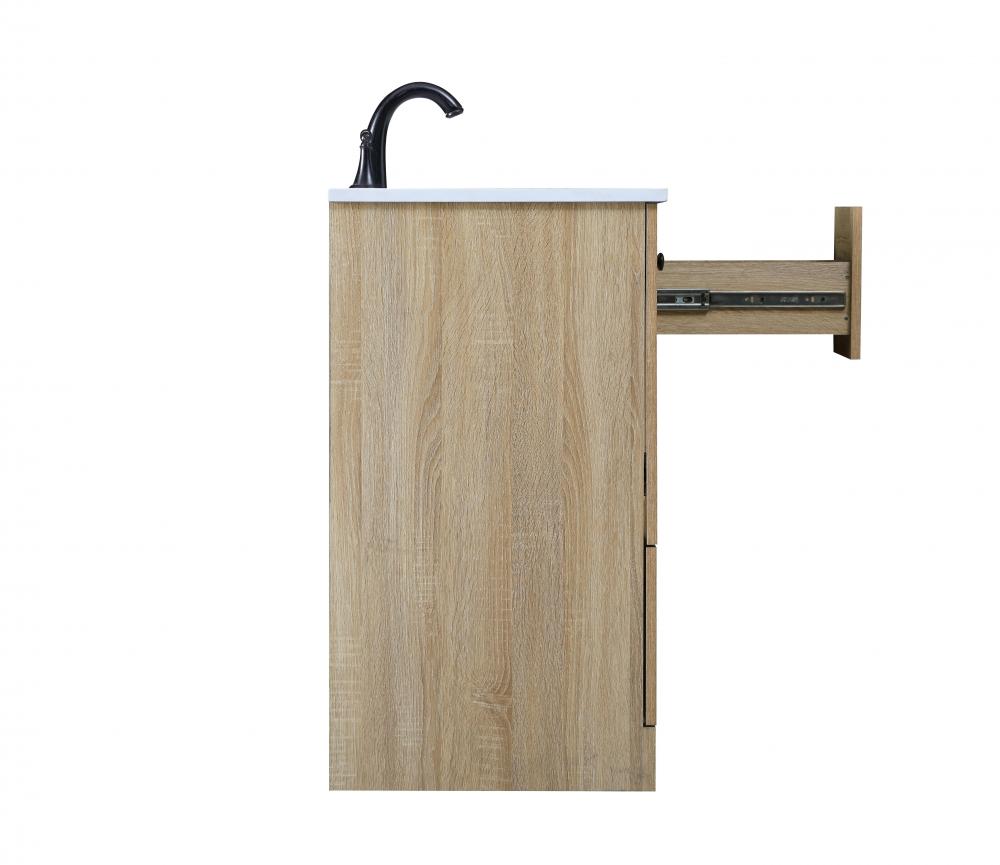 Revel in the beauty of a vanity that mimics the charm of real wood without the maintenance, boasting a faux wood look that adds a touch of natural warmth and rustic sophistication to your bathroom.