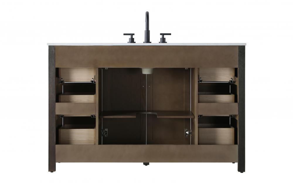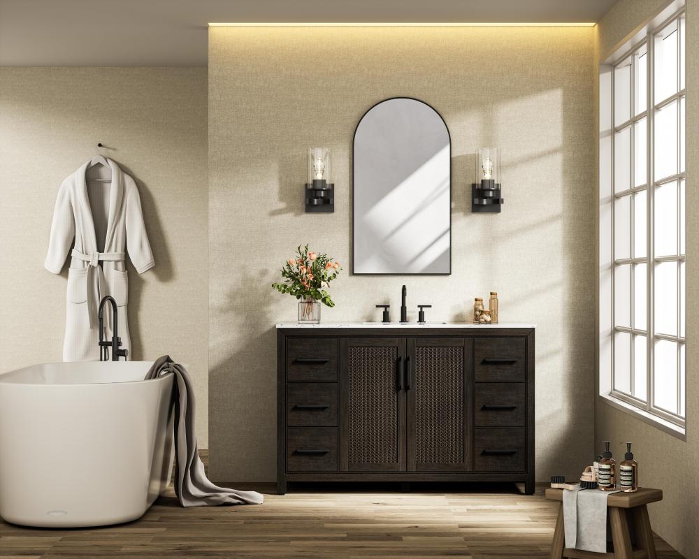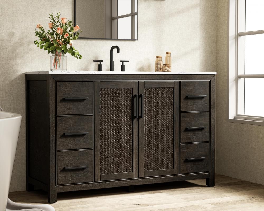 Perfect for those with an eye for detail and quality, this transitional vanity blends modern design with timeless elegance. Available in five stunning finishes, from Crisp White to Linen Oak, the wood grain visuals of the oak options bring warmth and character to any bathroom. The caning design on the Shaker-style door panels adds texture and a touch of refinement, while the soft-closing doors and drawers ensure smooth, quiet functionality. Topped with a white engineered marble countertop, the vanity offers both luxury and practicality, complete with pre-drilled faucet holes for customization. A concealed overflow and U-shaped shelf for plumbing make installation effortless, and the slender black metal pulls provide a sleek contrast.
