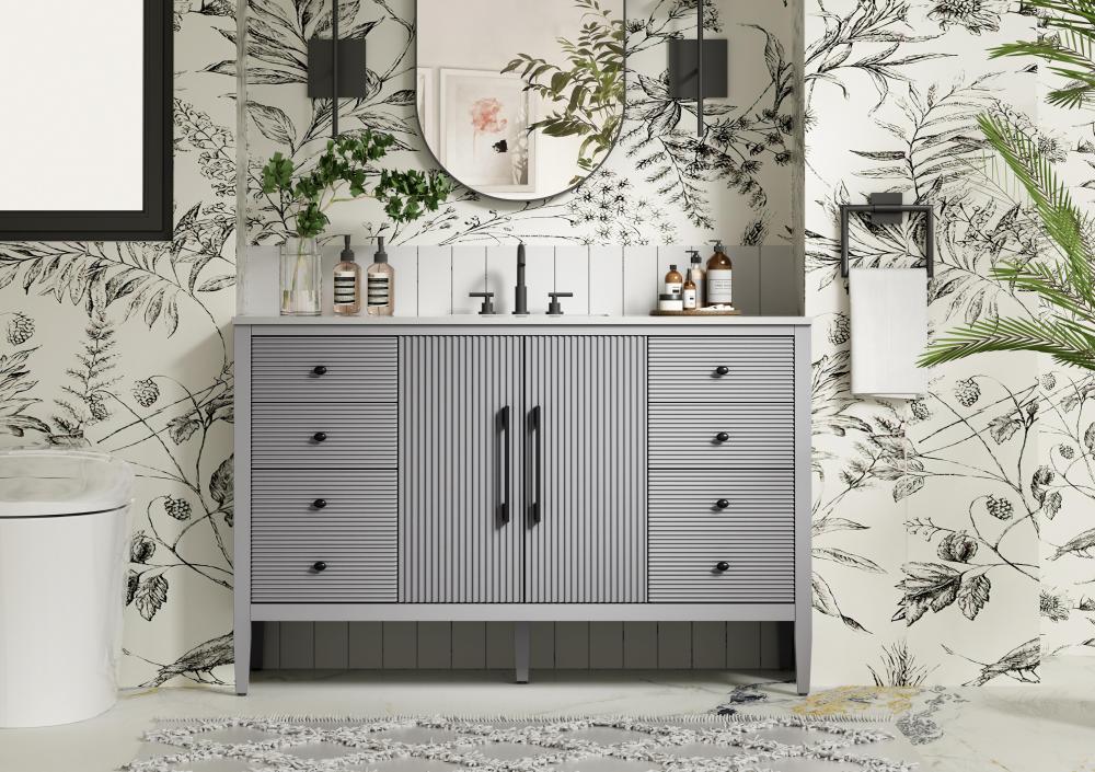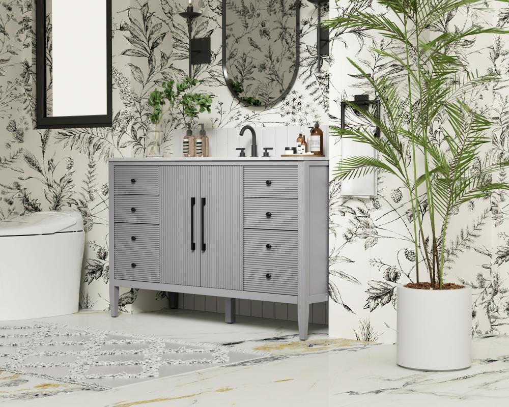 Designed with transitional elegance in mind, this bathroom vanity seamlessly blends traditional elements with modern functionality. Available in five stunning finishes, from the clean sophistication of Crisp White to the natural warmth of Honey Oak, the fluted door and drawer panels add subtle texture and charm. The white engineered marble countertop with natural veining exudes luxury, while the soft-closing doors and drawers with sleek black metal pulls offer a quiet, refined experience. Practicality is never compromised, with features like the U-shaped shelf for plumbing, deeper bottom drawer for ample storage, and pre-drilled faucet holes for easy customization. Whether your style leans modern or classic, this vanity is the perfect balance of beauty and function, appealing to customers with a taste for quality and style.