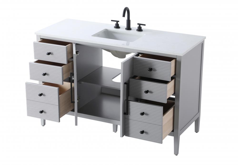 The textured fluted design on the door and drawer panels adds visual interest and elegance, creating a balance of classic charm and contemporary style.