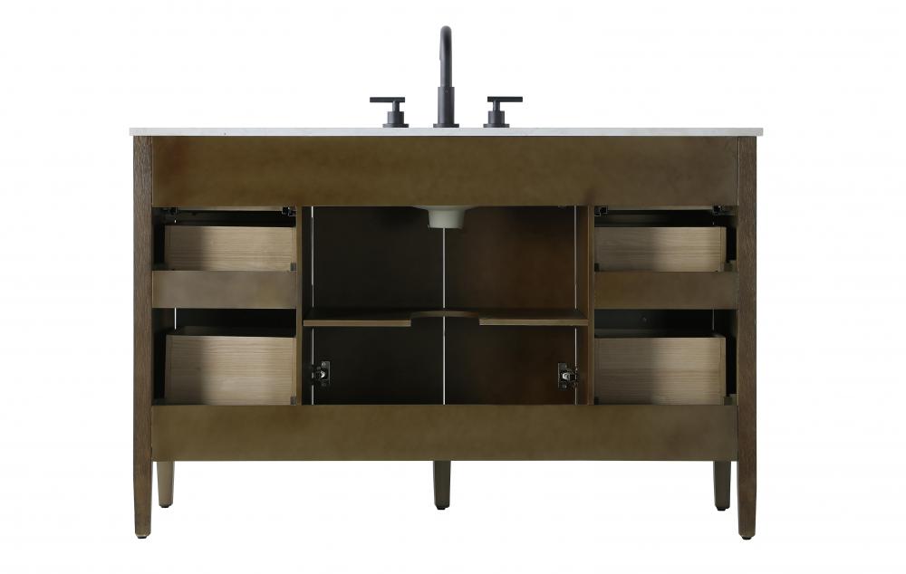 The vanity is topped with a stunning white engineered marble countertop with natural veining that adds luxurious detail and durability.