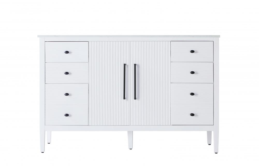 The textured fluted design on the door and drawer panels adds visual interest and elegance, creating a balance of classic charm and contemporary style.
