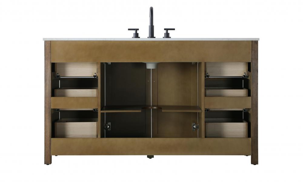 Perfect for those with an eye for detail and quality, this transitional vanity blends modern design with timeless elegance. Available in five stunning finishes, from Crisp White to Linen Oak, the wood grain visuals of the oak options bring warmth and character to any bathroom. The caning design on the Shaker-style door panels adds texture and a touch of refinement, while the soft-closing doors and drawers ensure smooth, quiet functionality. Topped with a white engineered marble countertop, the vanity offers both luxury and practicality, complete with pre-drilled faucet holes for customization. A concealed overflow and U-shaped shelf for plumbing make installation effortless, and the slender black metal pulls provide a sleek contrast.