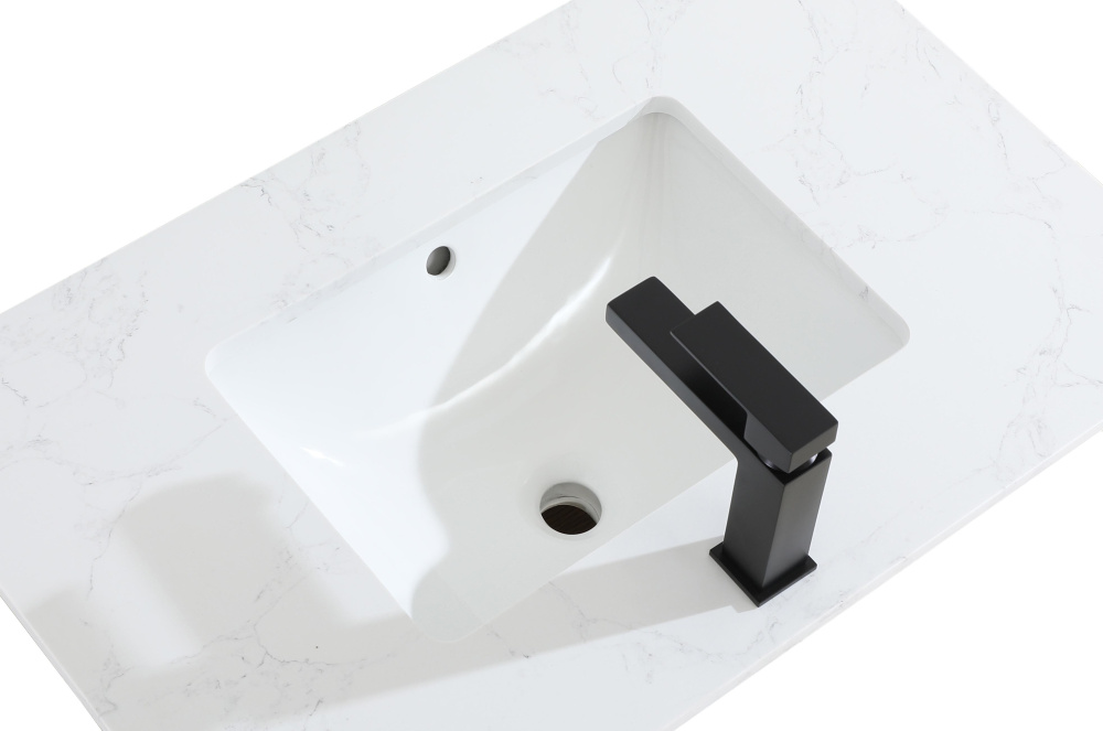 Topped with a faux marble design, ensuring a unique and refined look on every vanity.