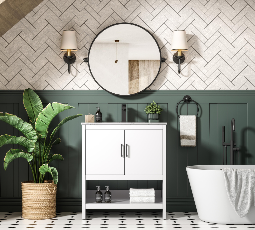 Topped with a faux marble design, ensuring a unique and refined look on every vanity.