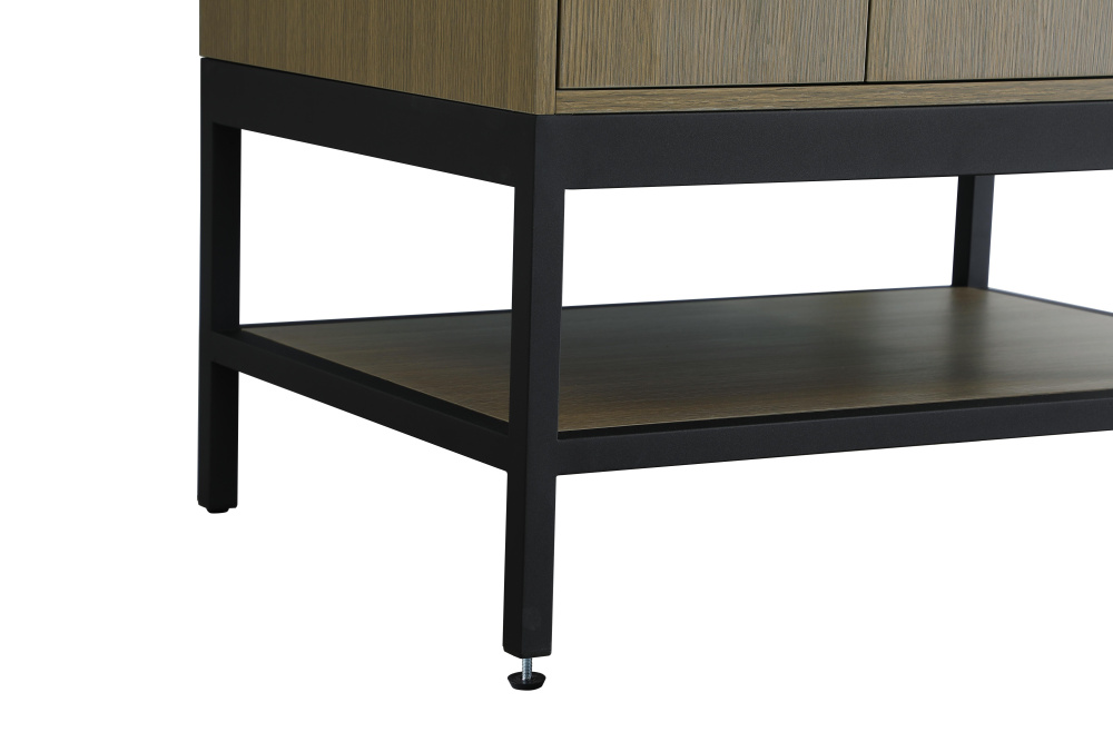 Upgrade your bathroom with this modern bathroom vanity that combines form and function effortlessly. Its sleek wood veneer cabinetry, paired with a bold black metal frame, brings a clean, contemporary vibe to any space. Designed with practicality in mind, the cabinet organizes your essentials, as well as an open lower shelf for added storage or display. The durable engineered marble countertop is built to withstand daily use, while the undermount porcelain sink ensures easy maintenance. Complete with matte black hardware and pre-drilled features for effortless installation, this vanity is the perfect centerpiece to refresh your bathroom with style and efficiency.