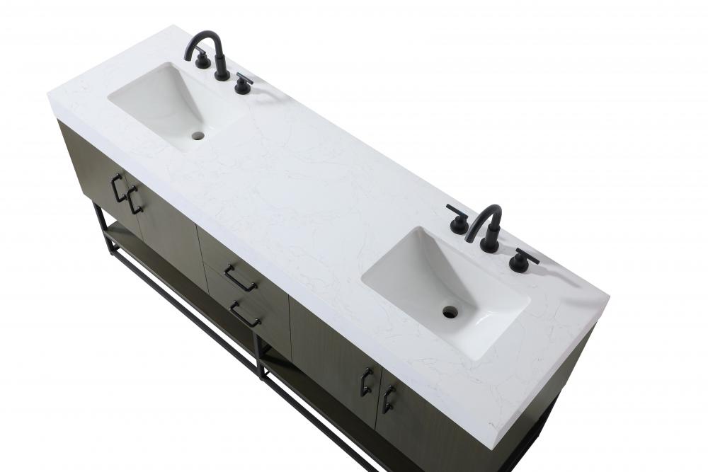 Topped with a thick, 4-inch white engineered marble countertop featuring natural veining, this vanity combines luxurious aesthetics with durability.