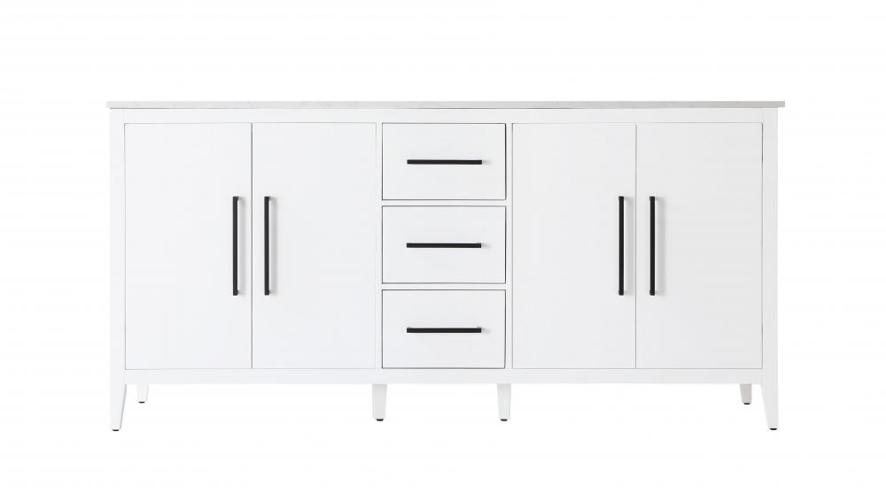 Topped with a white engineered marble countertop featuring elegant veining, this vanity adds a luxurious yet durable surface that’s easy to maintain.