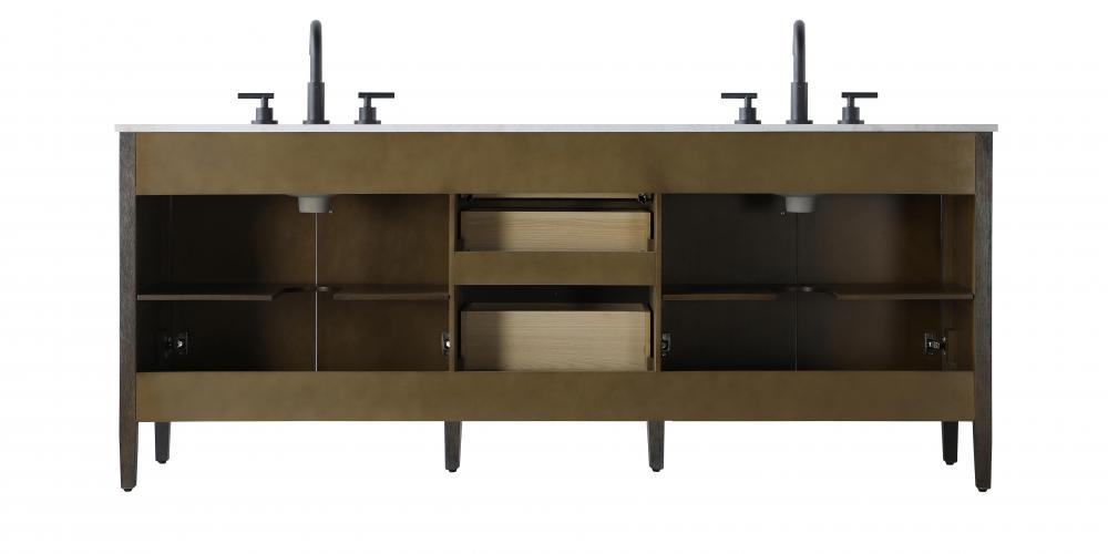 The vanity is topped with a stunning white engineered marble countertop with natural veining that adds luxurious detail and durability.