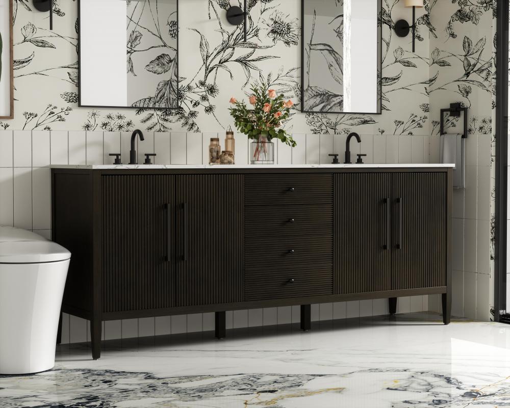Designed with transitional elegance in mind, this bathroom vanity seamlessly blends traditional elements with modern functionality. Available in five stunning finishes, from the clean sophistication of Crisp White to the natural warmth of Honey Oak, the fluted door and drawer panels add subtle texture and charm. The white engineered marble countertop with natural veining exudes luxury, while the soft-closing doors and drawers with sleek black metal pulls offer a quiet, refined experience. Practicality is never compromised, with features like the U-shaped shelf for plumbing, deeper bottom drawer for ample storage, and pre-drilled faucet holes for easy customization. Whether your style leans modern or classic, this vanity is the perfect balance of beauty and function, appealing to customers with a taste for quality and style.