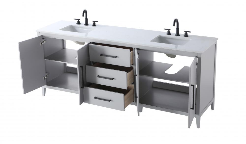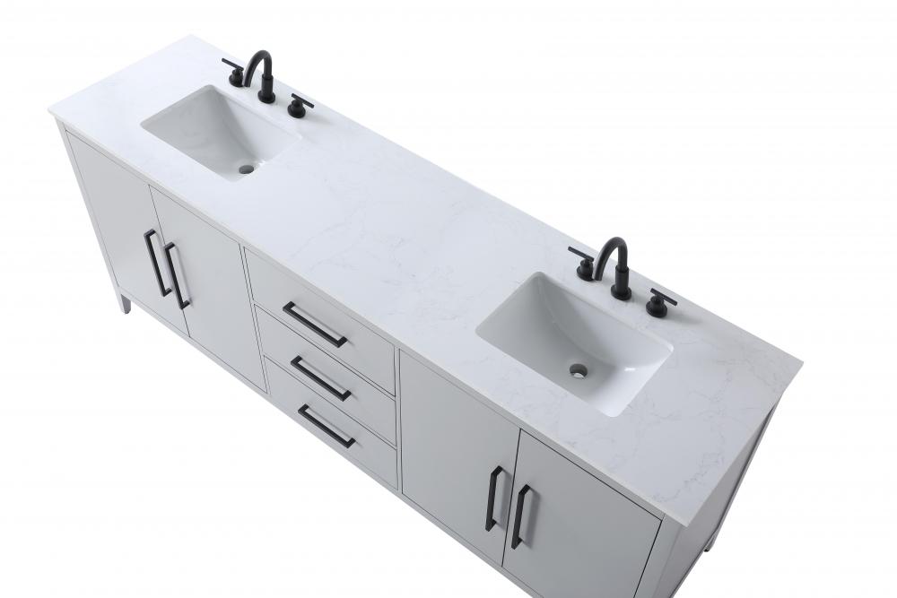 Topped with a white engineered marble countertop featuring elegant veining, this vanity adds a luxurious yet durable surface that’s easy to maintain.