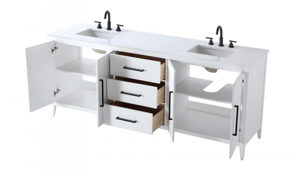 Topped with a white engineered marble countertop featuring elegant veining, this vanity adds a luxurious yet durable surface that’s easy to maintain.