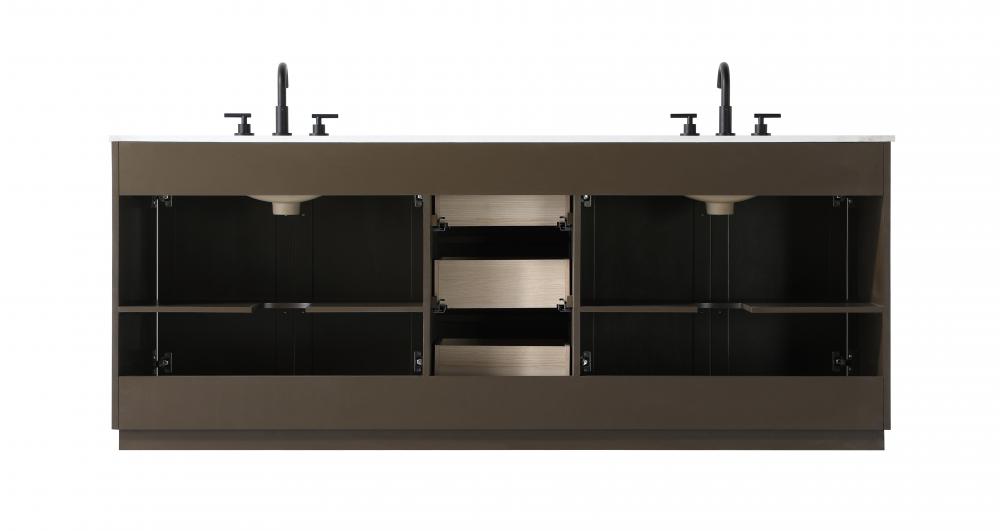 The vanity is topped with a white engineered marble countertop featuring subtle, natural-looking veining that creates a luxurious yet low-maintenance surface. This countertop adds elegance while providing durability, making it ideal for everyday use.