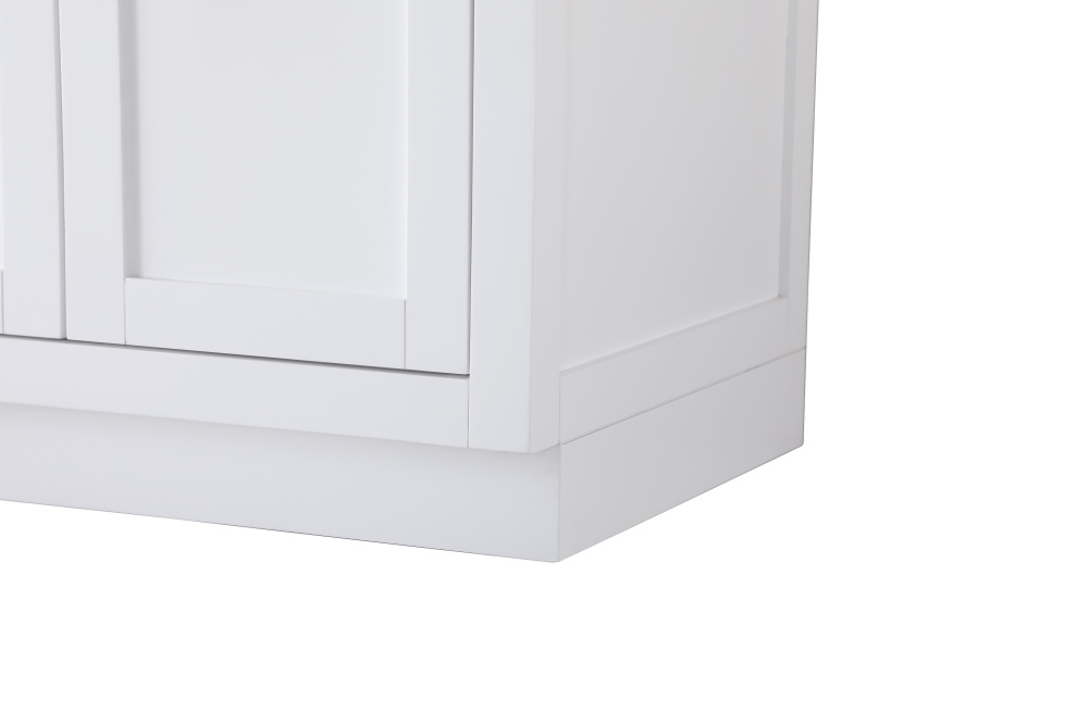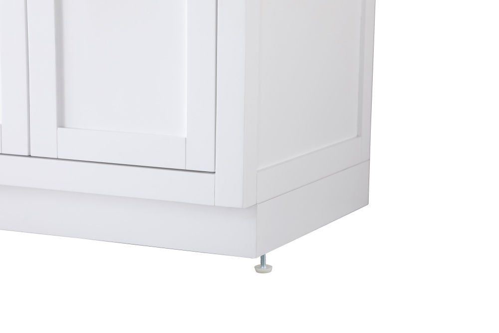 Toe kick design offers a streamlined look while providing easy cleaning access beneath the vanity.