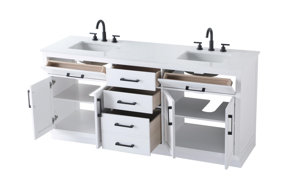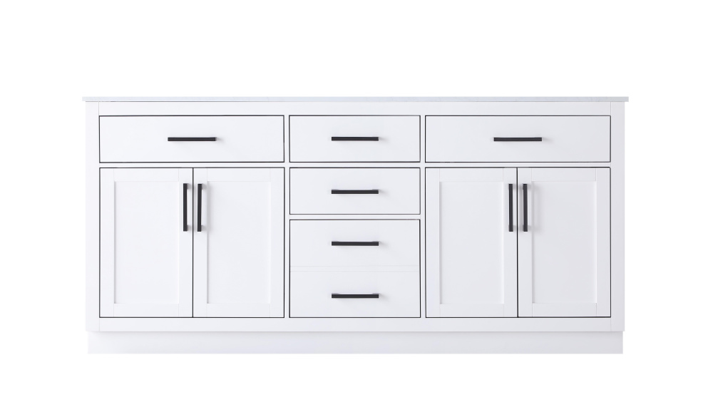 Spacious bottom deep drawers provide extra room for storing larger items like towels or cleaning supplies.
