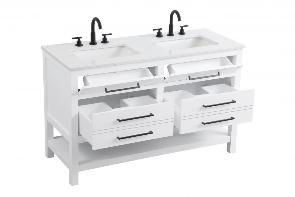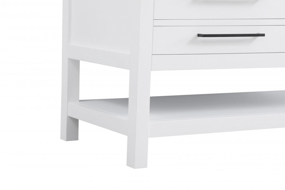 Elevate your bathroom design with this versatile and beautifully crafted bathroom vanity cabinet. The engineered marble top features striking veining, adding a luxurious focal point to your space. Built from premium solid wood and MDF, it ensures long-lasting durability and strength. The porcelain sink, complete with a concealed overflow, offers a seamless and refined finish.Available in four stunning finishes—Chestnut Brown, Honey Brown, Mocha Brown, and White—this vanity suits any interior style. Designed with convenience in mind, it features soft-closing drawers with modern handles and a tip-out drawer for easy access to small essentials, keeping your space tidy. The bottom deep drawer mimics the appearance of two separate drawers, providing ample storage for larger items, while the open shelf at the base offers additional storage space for towels or decor.Fully assembled for your convenience, it includes foot levelers for stability on any surface. For a complete look, pair it with an optional matching backsplash, sold separately. UPC certified for quality assurance, this vanity is the perfect combination of functionality, style, and ease of use.