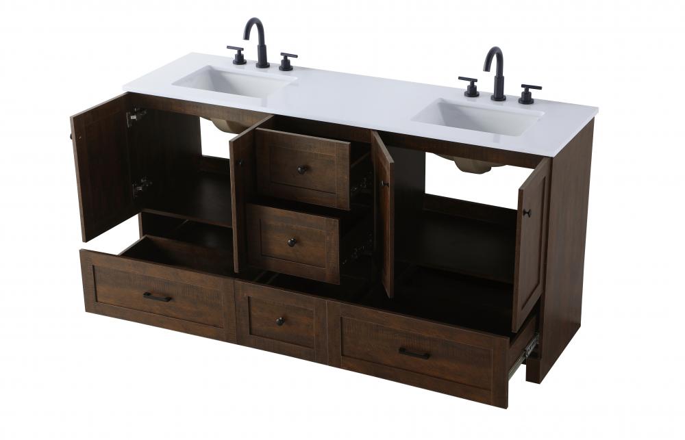 Transform your bathroom into a haven of sophistication with our double vanity, featuring an engineered marble top in a classic ivory white hue and a sleek straight-edge cut. Enjoy a seamless look with undermount porcelain sinks, as the fully assembled unit ensures hassle-free installation. Enhanced organization comes with five drawers and a spacious cabinet, all equipped with smooth soft-close glides and hinges. Elevate your space with the sleek aesthetic of black hardware, creating a perfect blend of style and functionality. Redefine your bathroom experience with this exquisite double vanity.