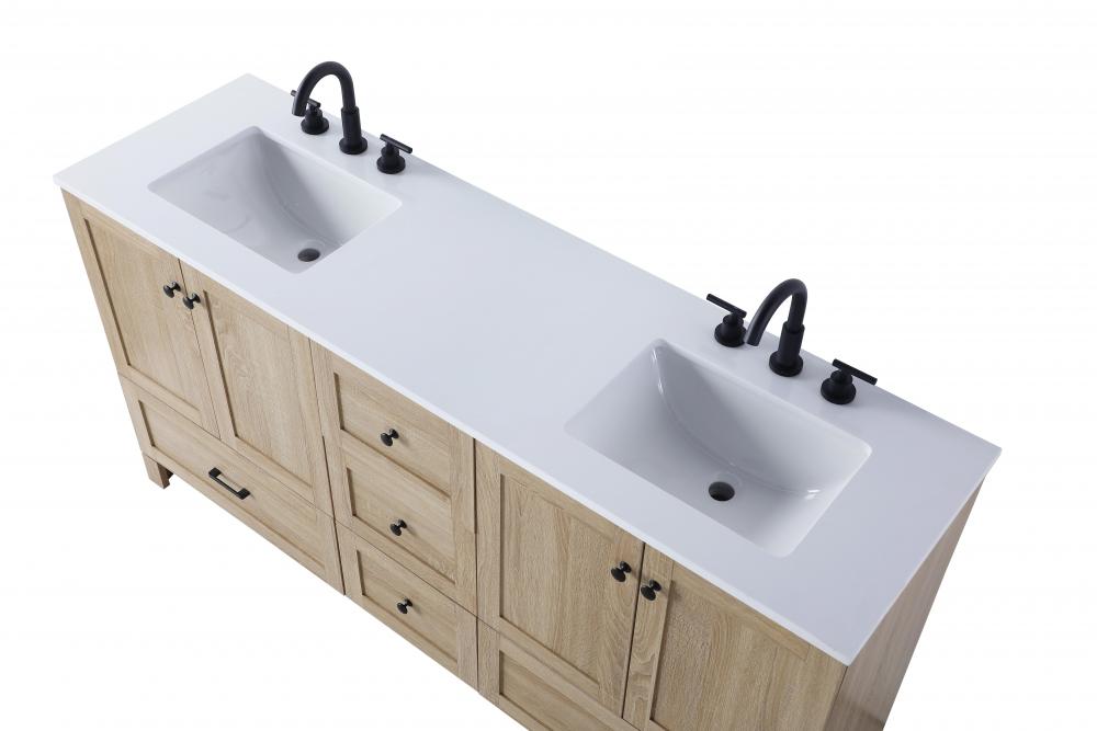 Transform your bathroom into a haven of sophistication with our double vanity, featuring an engineered marble top in a classic ivory white hue and a sleek straight-edge cut. Enjoy a seamless look with undermount porcelain sinks, as the fully assembled unit ensures hassle-free installation. Enhanced organization comes with five drawers and a spacious cabinet, all equipped with smooth soft-close glides and hinges. Elevate your space with the sleek aesthetic of black hardware, creating a perfect blend of style and functionality. Redefine your bathroom experience with this exquisite double vanity.