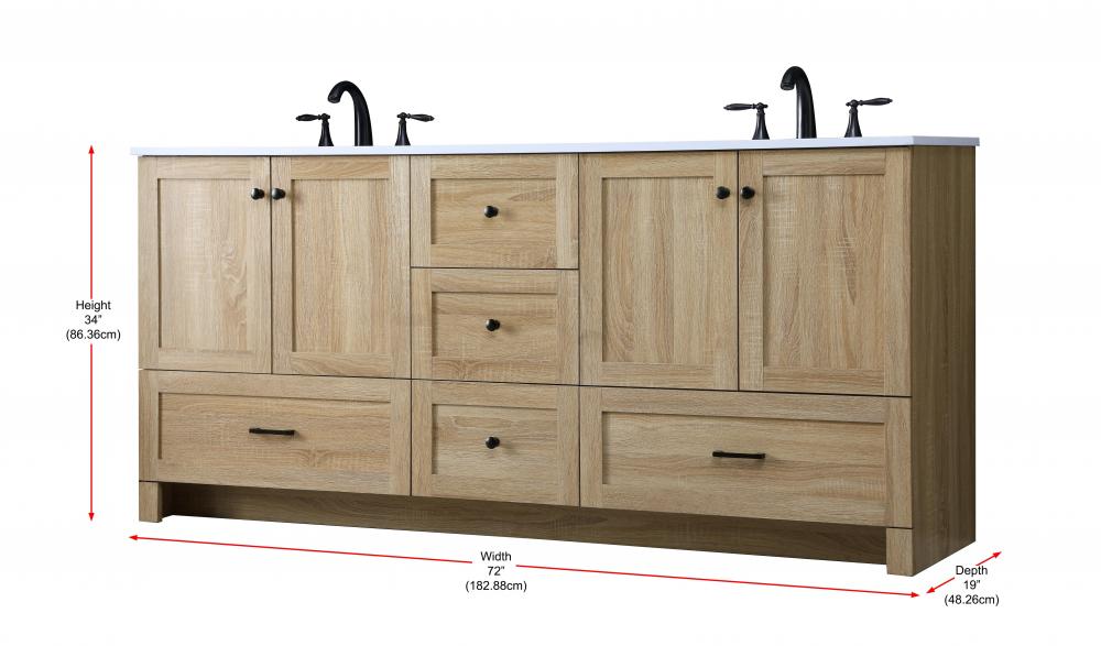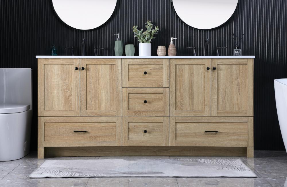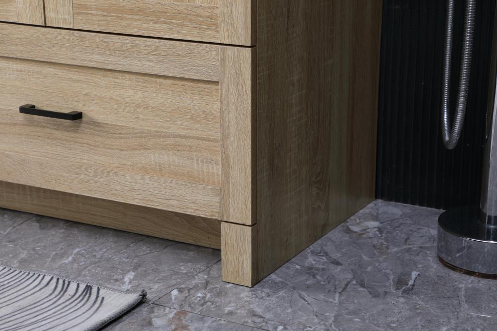 Revel in the beauty of a vanity that mimics the charm of real wood without the maintenance, boasting a faux wood look that adds a touch of natural warmth and rustic sophistication to your bathroom.