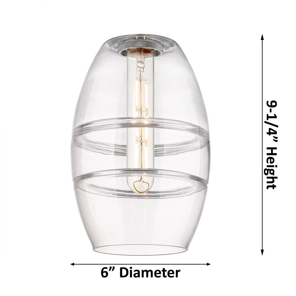 The Vas Series is meticulously handcrafted, showcasing exquisite glass band detailing. These bands are the result of a complex and delicate glassblowing technique, making each pendant truly one-of-a-kind. While the exterior of the glass shade has a sleek a