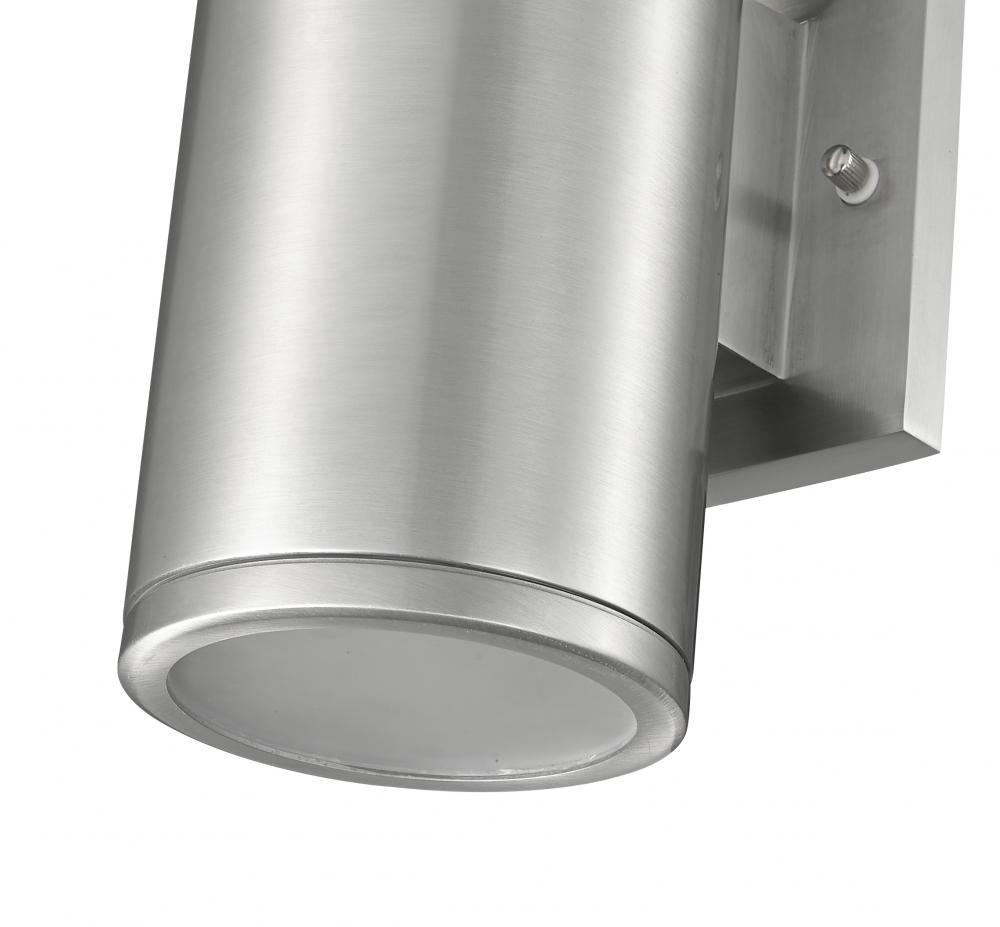 For an outdoor lighting solution that is as illuminating as it is subtle, the Vegas Collection satisfies any contemporary exterior needs. The sleek, cylindrical body of the aluminum fixture funnels light both upward and down for a more focused coverage and is perfect for walkways, courtyards, and entryways. The collection is finished in an exquisite powder coat of black or lustrous silver, with frosted glass for the perfect glow.