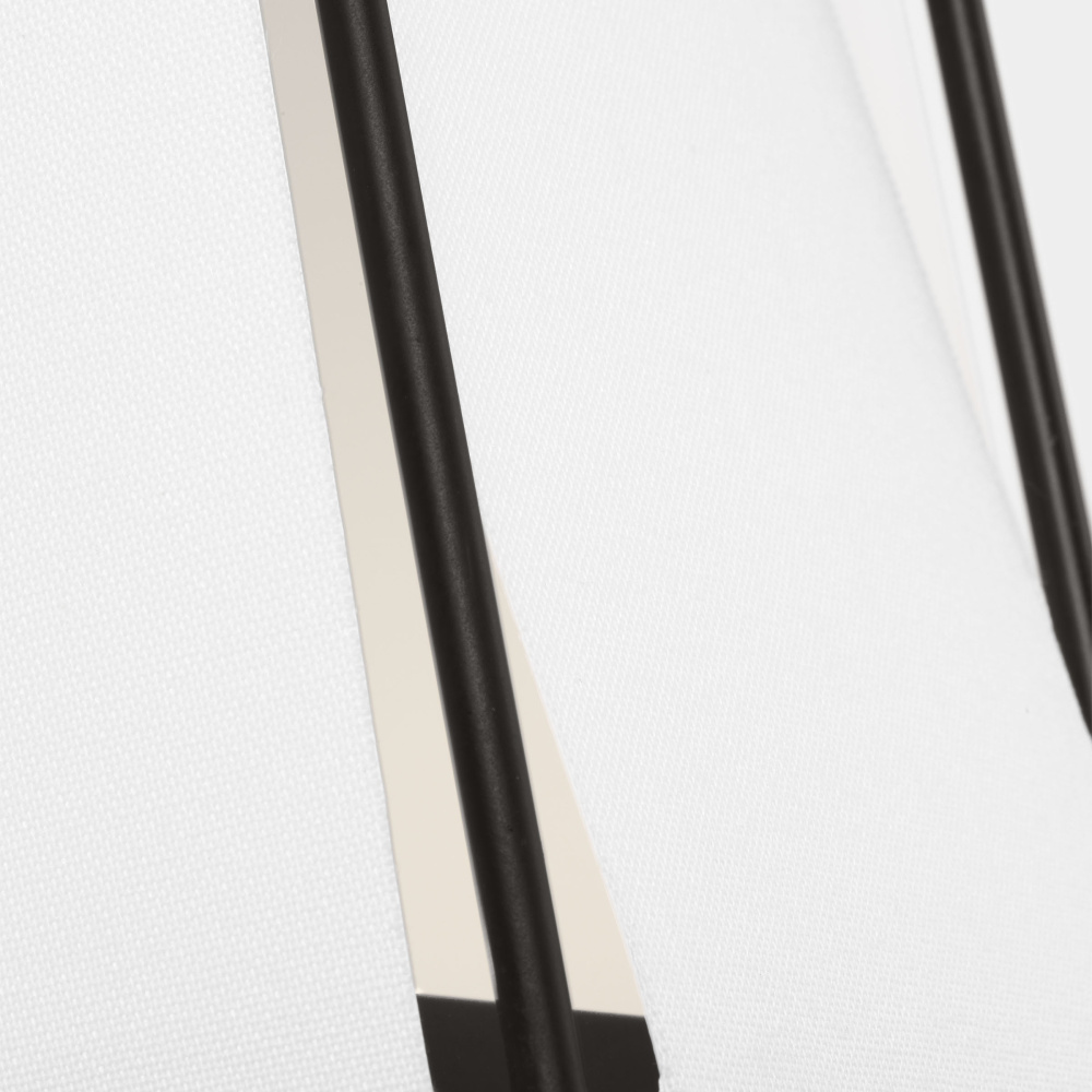 Crafted with Steel in a Aged Iron finish with white linen fabric shade