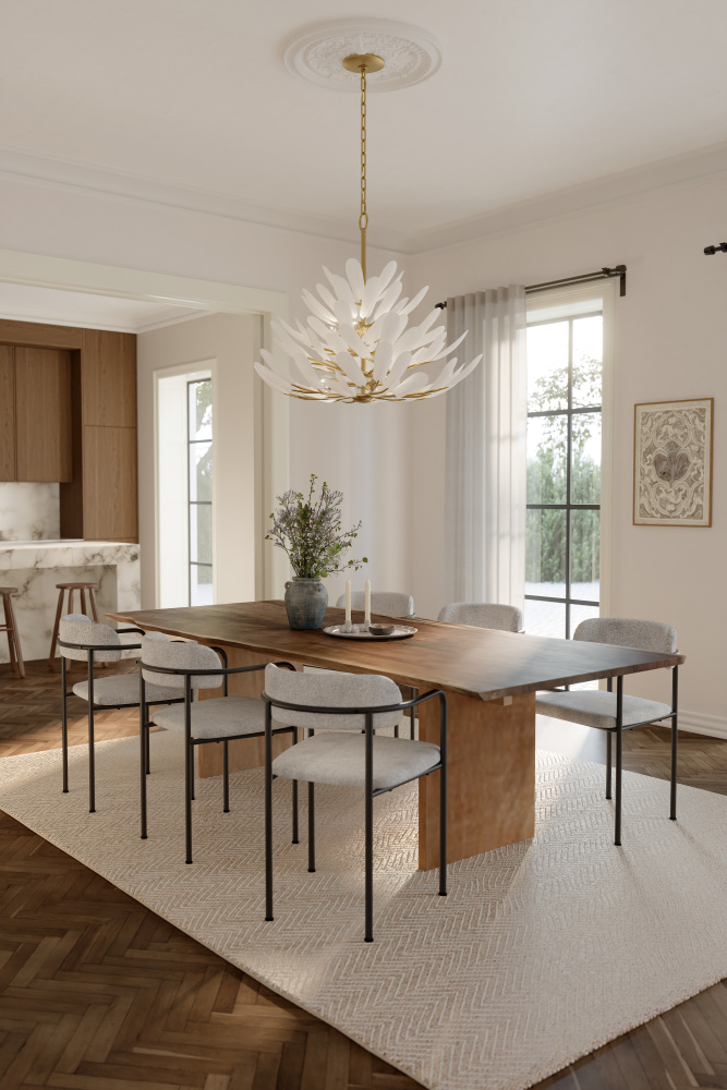 The Vellinor chandelier blends transitional lines with warm, inviting illumination.